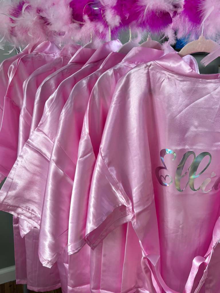 👘 Satin spa robes to wear during the party for a VIP glam touch